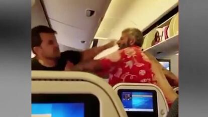 Un avión de la compañía All Nippon Airway iba a volar de Tokio a Los Ángeles cuando uno de los pasajeros inició una discusión que llegó a las manos con otro viajero. Según algunos testigos, el enfrentamiento, que se produjo el pasado miércoles, arrancó sin un motivo aparente. En un vídeo grabado por un tercer pasajero, se ve cómo un hombre se enfrenta a otro que está sentado en la fila de atrás y le propina un golpe. La discusión se calma durante un momento, pero segundos después vuelven a la carga. La aerolínea japonesa pidió disculpas a través de un comunicado por el retraso del vuelo, que salió una hora y media tarde del aeropuerto de Narita. Finalmente, el agresor fue arrestado y se quedó en tierra. Fuentes policiales señalaron que el hombre detenido presentaba signos de ebriedad.