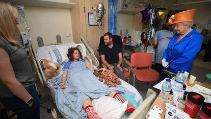 La reina ha visitado a algunos de los menores hospitalizados tras la explosión en un concierto de Ariana Grande