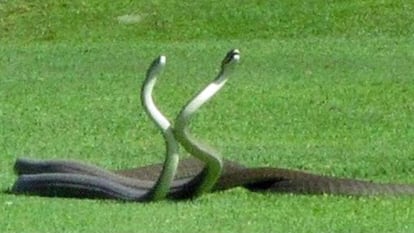 La pelea de dos serpientes interrumpe un partido de golf en Sudáfrica