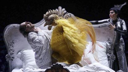 Decía Gore Vidal que ser perfecto para la televisión es todo lo que un presidente necesita. Se refería a Ronald Reagan. Vidal identificaba así ese deslizamiento con el que el votante se convierte en audiencia y es quien le seduce catódicamente el que se termina llevando su papeleta. Pero los tiempos han cambiado y donde Vidal decía televisión ahora habría escrito Twitter. Con un matiz: la perfección de Twitter poco tiene que ver con aquel ideal algodonoso y sonriente de los ochenta reaganianos. La perfección en 140 caracteres tiene más que ver con Donald Trump. El presidente de Estados Unidos es exclamativo y monosilábico. Directo. Se presenta como uno más. Como un ciudadano indignado. Repite palabras fáciles de recordar. Entre sus favoritas, fake. Es su mantra en la era de eso que hemos llamado postverdad y que en otro tiempo se denominaba propaganda o manipulación. Pero Rimski-Kórsakov demuestra que ni la mentira embozada de verdad, ni el populismo son inventos recientes. El Gallo de Oro es una fábula sobre un rey que recuerda sospechosamente al zar Nicolas II, pero que tiene resonancias y reflejos en la política actual. Gobernantes que le dicen a su pueblo lo que quiere escuchar. Ciudadanos pastoreados con promesas repetidas. Consejeros que revolotean alrededor de los poderosos para saciar su propia ambición. Lo que sucede hoy siempre se puede explicar con algo que se escribió ayer. En este caso, con una ópera tan ácida como divertida que se puede ver en el Teatro Real de Madrid.