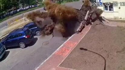 Una gigantesca explosión sacudió este lunes una calle de Kiev. Una tubería de aguas residuales hizo estallar el asfalto y lanzó lodo hasta una altura que alcanzó siete pisos, según medios locales. La causa fueron unas pruebas hidráulicas sobre las tuberías, que datan de finales de los años 70. Pese a la espectacularidad de las imágenes grabadas por cámaras de seguridad, no hubo que lamentar daños personales. Por el contrario, los coches próximos y las ventanas de los edificios más cercanos sí resultaron afectados. Las autoridades locales han asegurado que los afectados recibirán una compensación.