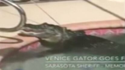 Se disponía a limpiar su piscina cuando vio que se había colado un caimán de más de dos metros. Es lo que le pasó el pasado lunes a una vecina de Plantation, una localidad de Florida (sureste de EE UU). Alarmada, la mujer se metió en casa y llamó al número de emergencias. Cuando llegó el sheriff del Condado de Sarasota, el reptil seguía en el agua, así que no hubo más remedio que llamar a un trampero para capturarlo y llevarlo de nuevo a un lugar alejado de las viviendas. "Nada nos sorprende ya", han asegurado de la oficia del sheriff a la agencia Reuters, señalando que en otras ocasiones han tenido que sacar caimanes incluso de una pista de tenis. Habitualmente cuando estos reptiles se mueven más es en la época de celo, que empieza en primavera. La operación de rescate fue grabada por las autoridades y puede verse en el vídeo superior.