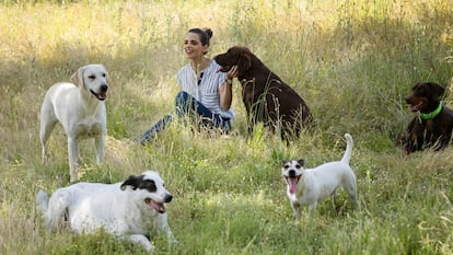NUEVE PERROS CUSTODIAN a Macarena Gómez en sus paseos por el campo. “La mía es Camila, los otros viven en la casa familiar”. La actriz, conocida por su papel de Lola Trujillo en la serie La que se avecina, se refiere a la finca de sus suegros, en un pueblecito cerca de Figueras (Girona). Suele pasar allí los fines de semana con su marido, Aldo Comas, y su hijo Dante, de dos años. Les gusta montar en un carro de golf, mientras su gran familia canina les persigue. Excepto Matilda y Lima, que van con ellos en el vehículo. “Es un momento de felicidad”, dice la actriz, de 39 años. Pero si uno de los animales se acerca al niño, la protagonista de Musarañas se pone alerta. “Por mucho que les quieras, nunca sabes cómo va a reaccionar un perro ante un nuevo estímulo”.