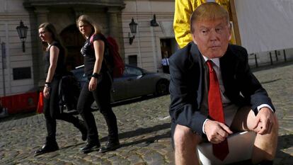 Cinco personas con caretas del presidente de EE UU, Donald Trump, sentadas en el váter con un cartel: "Me importa una mierda el cambio climático". Ha sido la protesta de Greenpeace en el Día Mundial del Medio Ambiente. La cita se conmemora, a instancias de Naciones Unidas, cada 5 de junio desde 1972, pero este año se ha visto ensombrecida por el reciente rechazo del mandatario estadounidense al Acuerdo de París para la lucha contra el cambio climático. La primera potencia mundial, que es también la segunda con más emisiones contaminantes, obviará el pacto alcanzado en 2015 entre los principales actores mundiales para frenar el calentamiento global. Aunque este año el Día Mundial del Medio Ambiente tiene a Canadá como país anfitrión, la gráfica protesta de Greenpeace ha tenido lugar ante la Embajada de EE UU en Praga (República Checa).