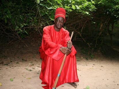 A lo lejos, los tambores comienzan a marcar el ritmo. Los primos de Komilá Diatta se pintan la cara de blanco y se hacen fotos con sus móviles en poses desafiantes. En el raro frescor de las casas de paredes de barro y techos de chapa se bebe vino de palma. De repente, suenan gritos. Los vecinos de esta comunidad de Bueno acuden a la llamada y arranca el econcón, el cadencioso baile ritual. Los jóvenes danzan siguiendo el paso de la percusión y las mujeres les jalean y les echan arroz y polvos de talco por encima en señal de júbilo. Allí, atento a todo, está Sunol Yené, el místico que organiza y dirige la ceremonia.