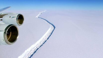 Sin embargo, el desgajamiento en Larsen C no tiene por qué estar relacionado con el calentamiento global. “No tenemos ninguna prueba que apoye un vínculo con el cambio climático”, reconoce Luckman. “La grieta ya era una característica bien establecida en la barrera de hielo Larsen C en la década de 1980, según los datos de satélite”, subraya.