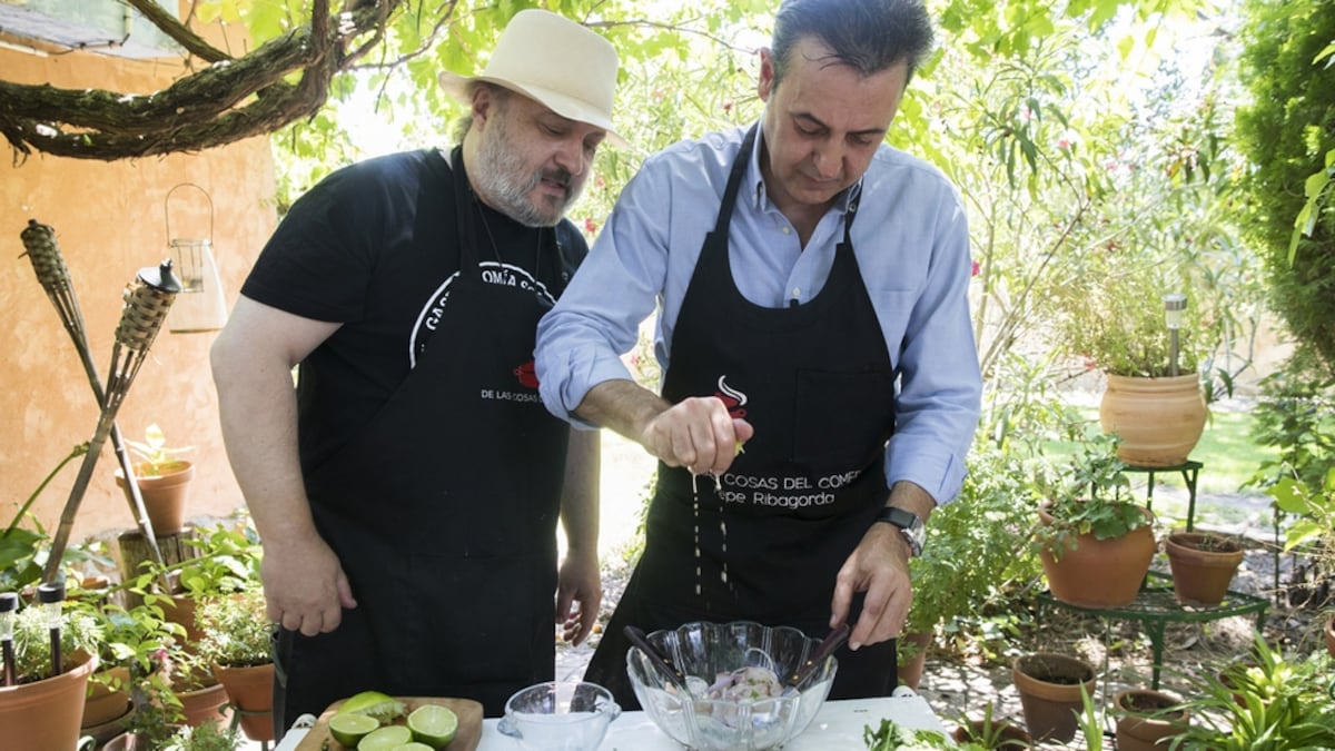 El día, radiante y con un cielo límpido, no podría haber despertado más apetecible. Quizá, por ponerle alguna pega, caluroso en exceso. El lugar de la cita, una casa con un jardín verde y mullido rematado por un refrescante rincón a la sombra de las parras, redondea el plan. Pero solo con el placer de la compañía hubiera bastado. José Ribagorda, el conocido presentador de los informativos del fin de semana en Telecinco, me recibe en su casa junto a su familia para dedicar un momento a una actividad ajena a su profesión a la que en realidad dedica todo el tiempo que puede: la gastronomía.