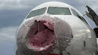 Una tormenta de granizo en la ciudad turca de Estambul ha provocado imágenes propias de una película de ciencia ficción. El suceso, que ocurrió el viernes, provocó que el aeropuerto de Atatürk cancelara todos sus vuelos. Los aviones que aterrizaron en la pista durante la tormenta sufrieron numerosos destrozos. La caída de una grúa provocó una explosión y un incendio que era visible desde varios kilómetros a la redonda. El muro de un cementerio se desplomó e hirió a dos personas, quienes, según indica la agencia Reuters, han sido los únicos afectados. El granizo, del tamaño de pelotas de tenis, ha causado numerosos destrozos por toda la ciudad.