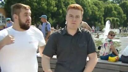 Un ‘hooligan’ agrede a un periodista ruso en directo