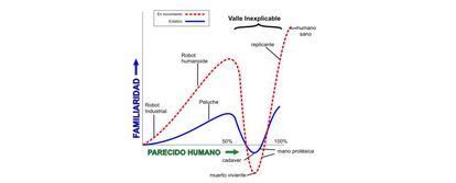 Es lo que se ha denominado el valle inquietante o inexplicable, una idea en robótica acuñada por el teórico y pionero de la robótica japonés Masahiro Mori en 1970 que afirma que cuando un robot parece un humano, la respuesta emocional de las personas es positiva, pero solo hasta llegar un momento en el que esa misma apariencia provoca un fuerte rechazo, que vuelve a convertirse en empatía a medida que el robot se parezca más a un ser humano, hasta ser casi indistinguible.
