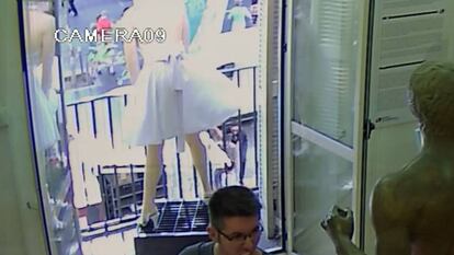 Una cámara de seguridad muestra el paso de la furgoneta que atropelló a más de 100 personas en el atentado de La Rambla de Barcelona. En las imágenes se aprecia el rápido paso del vehículo ante el Museu de l'Eròtica, casi al final del siniestro recorrido en el que dejó al menos 13 víctimas mortales y decenas de heridos. Mientras los viandantes corren para apartarse, entre ellos una pareja que maneja un carro de bebé al que va subido un menor, la furgoneta avanza a toda velocidad por el centro de la vía, reservado solo a peatones. El Museu de l'Eròtica de Barcelona se encuentra en el número 96 bis de La Rambla, más o menos en mitad de la popular calle barcelonesa. A pocos metros de allí, la furgoneta, que entró desde plaza de Cataluña y recorrió más de medio kilómetros, se detuvo y su conductor inició una huida a pie.