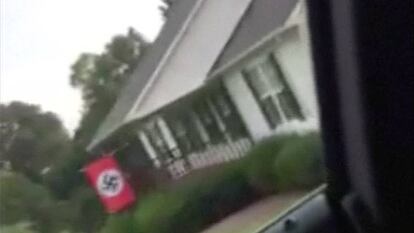 Un día después de la muerte de tres personas en Charlottesville durante una manifestación racista, una bandera nazi ondeaba en una vivienda en Mount Holly (Carolina del Norte, Estados Unidos). Una vecina del lugar ha registrado su conversación con el dueño de la casa, recriminándole que están "en América y no en la Alemania nazi", y en la que le pregunta si el presidente Donald Trump tiene algo que ver. El hombre evita responder sus preguntas, afirma que no es nazi y le pide de malos modos que se marche.