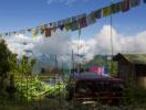 Passang y su mujer se acercan al campo, que se encuentra al lado de su casa, rodeado de banderas con oraciones budistas que se confunden con los colores de la ropa recién tendida. En su huerta cultivan pepinos, zanahorias moradas, jengibre y mostaza. Algunos al aire libre y otros en un pequeño invernadero que les protege en la época de los monzones. Son productos que la madre de Passang vende en una pequeña tienda familiar a pocos pasos de su hogar y al costado de la carretera. "Bienvenidos a mi aldea totalmente orgánica" saluda Passang, mostrando una planta de cardamomo de hoja larga, un cultivo típico del lugar cuyos frutos redondos y agridulces se utilizan para dar sabor a muchos platos de la comida característica de Sikkim. "Mirad: todo este verde que nos rodea ha sido reconvertido a orgánico en la última década por iniciativa del Gobierno", declara, señalándola exuberante vegetación sobre las montañas detrás de las nubes que coronan el monte Kanchenjunga, la tercera cima más alta del mundo.