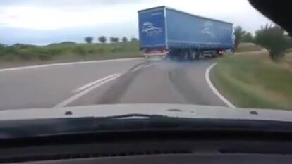 La empresa para la que trabajaba el camionero de este vídeo ha procedido a despedirle después de ver la grabación. En ella el conductor conduce a lo largo de una carretera comarcal, a las afueras de Barcelona, haciendo caso omiso a las señales de tráfico de limitación de la velocidad a 40 km/hora y ajeno incluso a los avisos de radar. Después de acercarse peligrosamente al quitamiedos al tomar una curva, invade en varias ocasiones el carril contrario y en otra curva llega a derrapar, de forma que la mercancía se desplaza. Los Mossos d´Esquadra actúan ya de oficio por un posible delito de conducción temeraria.