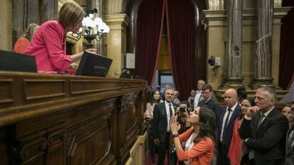 La presidenta de Ciudadanos en Cataluña se ha acercado al estrado de la presidenta del Parlament en un suspensión de la sesión