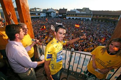 El español del equipo Trek Alberto Contador en su vuelta por la ciudad de Madrid durante la última etapa de La Vuelta ciclista a España, con salida en Arroyomolinos y llegada a la capital española, y un recorrido de 117,6 kilómetros.KIKO HUESCA (EFE)El ciclista madrileño del equipo Trek, Alberto Contador, pocos metros antes de la meta de la vigésimo etapa de la Vuelta Ciclista a España, el cual se ha proclamado el vencedor de la misma.Etapa con salida de Corvera de Asturias y meta en el Alto de Langlilu.Javier Lizon (EFE)El ciclista Alberto Contador (Tinkoff) durante la contrarreloj de la décima etapa de la Vuelta a España 2014.Javier Lizón (EFE)Contador, tras vencer en la 4º etapa de la Vuelta al Algarve de 2014.EFEContador, en un momento de una etapa del Tour de Francia de 2013.APEl ganador de la Vuelta Ciclista a España 2012, Alberto Contador, hace el gesto de disparar con los dedos, con el jersey rojo, en el podio de La Cibeles, al término de la última etapa, Cercedilla-Madrid.Álvaro GarcíaAlberto Contador, del equipo Saxo Bank, marcha escapado en la 17ª etapa de la Vuelta Ciclista a España 2012.ReutersRueda de prensa del ciclista Alberto Contador con motivo de la suspensión por dos años que le ha sido impuesta por dopaje, en un hotel de Pinto (Madrid), en 2012.Gorka LejarcegiEl español Alberto Contador durante el ascenso al Alpe d'Huez, en el transcurso de la 19ª etapa del Tour de Francia 2011.APEl corredor del Saxo Bank Alberto Contador, cambia de bicicleta tras una caída, empujado por un miembro de su equipo, ante la mirada del manager Bjarne Riis (al fondo), durante la novena etapa del Tour de Francia de 2011.reutersEl español Alberto Contador levante el trofeo que lo acredita como ganador del Giro de Italia de ciclismo, en el podio situado ante el Duomo de Milán, en 2011.ReutersContador, en una etapa del Giro d'Italia entre Spilimbergo y Glosslockner, en 2011.REutersEl ciclista español Alberto Contado (d), del equipo Astana, junto a Andy Schleck (i), del Saxo Bank, celebra en el podio de París la consecución de su tercer Tour de Francia, tras la vigésima y última etapa de la 97ª edición de la ronda francesa, en 2010.getty El ciclista español Alberto Contador (derecha) pedalea durante la carrera de Fleche Wallone disputada en Huy, Bélgica, en 2010.EFEEl ciclista del Astana y ganador del Tour de Francia, Alberto Contador, antes de salir a entrenar en Calp (Alicante), en 2010.CArles FrancescEl ciclista español Alberto Contador (i), ganador del Tour 2009 corriendo en el Astana, junto a su compañero de equipo Lance Armstrong (d), tercer clasificado, en el podio de los Campos Elíseos de París.AFPAlberto Contador, con el maillot amarillo pedalea entre dos motos durante la contrareloj de Annecy. en la 18ª etapa del Tour de Francia, en 2009.AFPEl ciclista del Astana, Alberto Contador, segundos antes de comenzar la contrarreloj del Campeonato de España de ciclismo, disputada entre las localidades cantabras de Torrelavega y Santillana del Mar, en 2009.EFEEl maillot amarillo, Alejandro Valverde (d), y Alberto Contador (inmediatamente detrás), durante la ascensión de La Madeleine, de la 7ª etapa de la Dauphine Libere, en 2009.