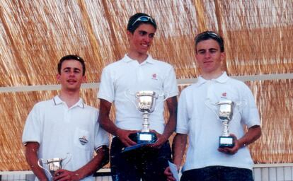 EFEEl ciclista español del equipo Discovery Channel, Alberto Contador, celebra su victoria en la línea de meta de la séptima etapa de la carrera París-Niza, en marzo de 2007.EFEEl ciclista español, Alberto Contador (centro), en el podio de una carrera ganada en Colmenarejo en 2000.Archivo familiar