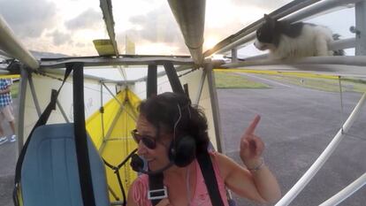 El vuelo en avioneta de una pareja que sobrevolaba Kourou, en la Guayana Francesa, recibió una visita sorpresa cuando los dos tripulantes descubrieron que llevaban un gato en el ala izquierda de la nave. En la grabación de la cámara integrada en el vehículo y que filmó toda la escena, se observa cómo el el animal trata de agarrarse a la estructura de la avioneta para no caerse mientras el piloto comienza el descenso. El club aéreo del que partió la avioneta ha adoptado al gato como mascota, cuyo vuelo se ha convertido en viral en las redes.