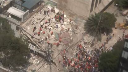 Los mexicanos ayudan a recoger los escombros de los edificios que un terremoto de magnitud 7,1 en la escala Richter ha provocado en Ciudad de México. Ha causado al menos 216 muertos — entre ellos una veintena de niños— y el derrumbe de decenas de edificios en la capital. Ocurre el mismo día en el que se cumplen 32 años del terremoto más mortífero de la historia del país, que dejó cerca de 10.000 muertos en México.