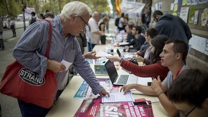 La mesa de la Universidad de Barcelona que reparte papeletas