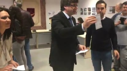 El president de la Generalitat Carles Puigdemont ha votado con motivo del referéndum declarado ilegal por la justicia en un colegio electoral de la localidad gerundense de Cornellà del Terri poco antes de las 10 de la mañana. En un principio estaba planeado que lo hiciera en otro centro localizado en Sant Julià de Ramis, pero la Guardia Civil había entrado poco después de las nueve en el polideportivo de esa localidad para retirar las urnas. Puedes ver todos los vídeos de la jornada aquí.