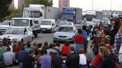 Decenas de personas cortan una autopista en Terrasa