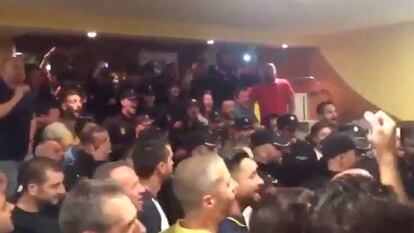 Agentes de la Policía responden a la protestas y cantan “yo soy español”
