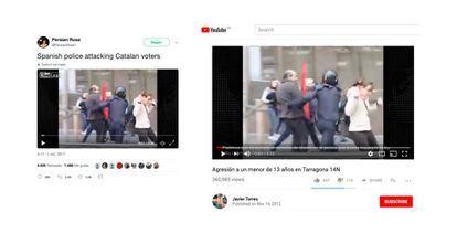 Otros perfiles, estos más en el plano internacional, como los de @ScotIndyDebate o @MC1988 compartieron vídeos de esas mismas cargas policiales de 2012, en los que se ve claramente a agentes de la policía autonómica catalana persiguiendo y cargando con saña con sus porras contra el menor. El vídeo original se halla en realidad en este enlace de YouTube y fue incluido por medios como EL PAÍS o El Mundo en sus informaciones en 2012.