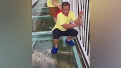 Pánico en un puente de cristal que ‘se agrieta’ a 1.000 metros