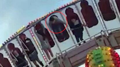 Un niño se libera temerariamente del arnés de una atracción de feria
