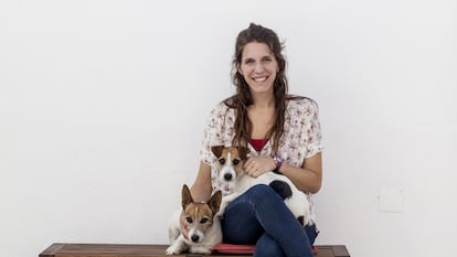 Los ladridos de unos perros anuncian la llegada de su dueña; tiene las manos cargadas de bolsas y la cabeza zumbando de ideas. “Habéis llegado antes de tiempo, ¿no? Estos son Paco, porque es español, y Muca, italiana. Estoy produciendo un disco y llego derrotada. Sentaos, que voy a cambiarme”.