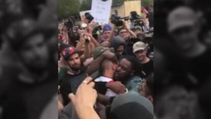 Un afroamericano abraza a un neonazi durante una protesta antisupremacista