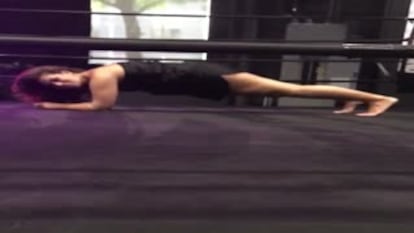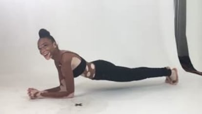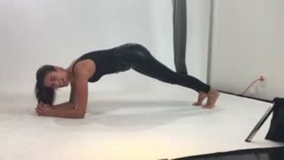Paradójicamente rodado para promocionar una marca comercial y convertido, por obra y gracia de la modelo del momento, en la biblia visual de todos los errores que se pueden cometer en unas planchas. “Tiene la cadera demasiado elevada y no deja quieta la cabeza, cuando es un ejercicio donde cuello y cabeza deben ser una prolongación de la espalda. Lo correcto es dejar la cabeza quieta y mirando hacia el suelo, no hacia el frente”. Para rematar el desastre “el hombro está en retroceso respecto al codo, cuando deberían estar formando un ángulo de 90º”.