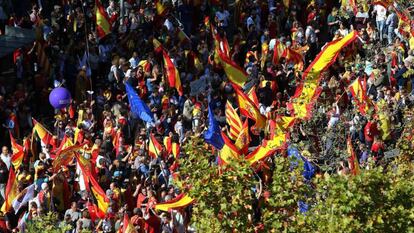 Cientos de miles de catalanes demostraron ayer que la manifestación del 8 de octubre no fue una respuesta fugaz al independentismo. Desbordando de nuevo las calles de Barcelona, dejaron meridianamente claro lo cómodos que se sienten en el marco constitucional español y, sobre todo, que no están dispuestos a regalarles la hegemonía de la calle a los secesionistas. Sin la estructura, financiación ni los apoyos institucionales de los que ha gozado el procés, Sociedad Civil ha demolido el mito independentista de que el pueblo catalán aspira a la ruptura. Después de ayer, el procés no podrá nunca más usurpar como ha hecho hasta ahora el nombre de Cataluña.