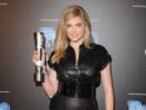 Kate Upton, que fue elegida la mujer más sexy del mundo en 2014 por la revista People, lució un vestido con mangas, de escote trasparente, falda voluminosa y cola larga. En el cabello, que llevaba suelto y peinado con ondas, tenía un velo que llegaba hasta debajo de la cintura.