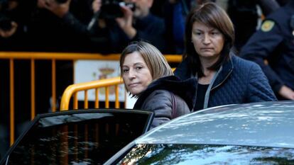La juez Carmen Lamela, de la Audiencia Nacional (AN), retuvo ayer en prisión a los exconsejeros de la Generalitat investigados por presunta rebelión. El juez Pablo Llarena, del Tribunal Supremo (TS), rechazó, también ayer, quitar la libertad de forma incondicional a los parlamentarios catalanes, con su presidenta al frente, incriminados por delitos similares: les impuso medidas cautelares menos gravosas.