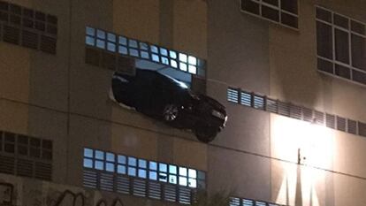 Una conductora atraviesa una pared y su coche queda suspendido a 30 metros
