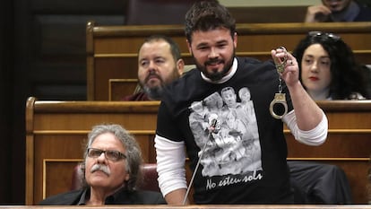 El diputado de ERC esgrime los grilletes: "Ustedes nos han molido a palos, nosotros les moleremos a votos", advierte al Gobierno antes de abandonar el hemiciclo