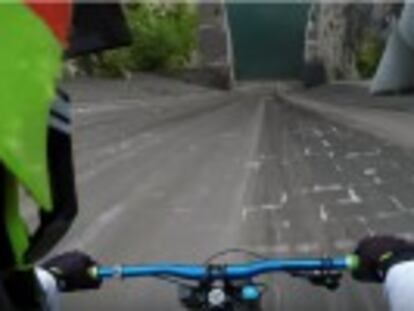 Kyle Strait es uno de los mejores ciclistas de montaña freeride, una modalidad donde han de superar obstáculos o realizar arriesgadas piruetas. Una cámara en su casco ha permitido grabar una de sus bajadas vertiginosas tal y como él la vio. Las imágenes se tomaron durante la 12ª edición del concurso Red Bull Rampage, celebrado el pasado 27 de octubre en Virgin (Utah, EE UU). Allí rodó por estrechos caminos y se lanzó por precipicios casi verticales. Strait solo pudo ser octavo (de 18 participantes) en la competición, pero dejó unas imágenes no aptas para personas con vértigo.