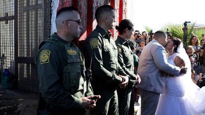 El muro que divide México y EE UU ha abierto sus puertas este sábado con un objetivo: unir. En tres minutos Evelia Reyes y Brian Houston contrajeron matrimonio en plena valla fronteriza. Ella es mexicana y él estadounidense pero Reyes no tiene documentos para visitar Estados Unidos, algo que se resolverá gracias a la boda.