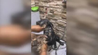 Dos cachorros han sido rescatados en un pozo de alquitrán en la ciudad chilena de Antofagasta por una asociación animalista. Inicialmente, según indica la web chilena Bio Bio Chile, eran tres, aunque uno murió en el lugar del suceso. En un vídeo difundido por la asociación, uno de los miembros pedía urgentemente aceite vegetal y trapos para intentar lavar a los animales. A lo largo de distintos vídeos se ve como poco a pocos los canes van mostrando sus colores y dejando atrás la pringue negra que los cubre. Los animales, que tenían cinco meses, estaban muy afectados. Ambos están estables y han sido ofrecidos en adopción.