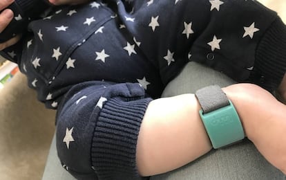 “No podíamos seguir así y por eso busqué en Internet información para saber si existía algo que pudiese controlar a la niña de otra forma. Y encontré la pulsera Liip, que es lo que nos ha cambiado la vida, por comodidad y por seguridad. Mi hija ahora tiene seis meses y puedo vigilar en directo sus constantes vitales a través del móvil, que está conectado a lo que mide su pulsera. La taquicardia está controlada con un medicamento, hasta que le hagan un cateterismo con dos o tres años, cuando crezca un poco más. De momento, podemos hacer vida casi normal, no vivimos con el miedo constante, ni tenemos que salir al parque con un monitor enorme enganchado en su sillita. Con la pulsera, solo salta una alarma si registra cambios en su salud, para ver si necesita unos pañitos húmedos para bajar una fiebre normal después de ponerle vacunas, por ejemplo, o si tenemos que ir a urgencias. Nos conectaría directamente con el 112 si alguna de sus constantes empeorase mucho”, explica la madre.