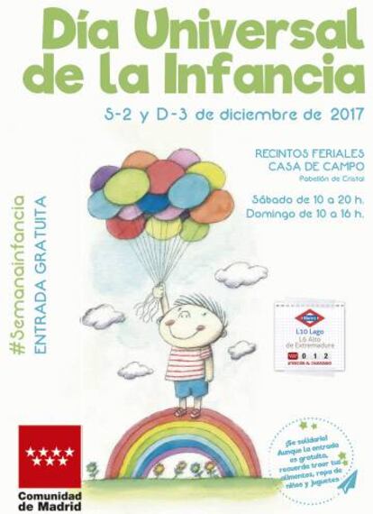 Casi 70 entidades entre instituciones, asociaciones, colectivos y ONG se dan cita este fin de semana en el Pabellón de Cristal de la Casa de Campo de Madrid para celebrar por todo lo alto el Día Universal de la Infancia (20 de noviembre), en un evento de entrada gratuita organizado por la Comunidad de Madrid y que cuenta con un programa repleto de talleres y actividades para niños y familias.