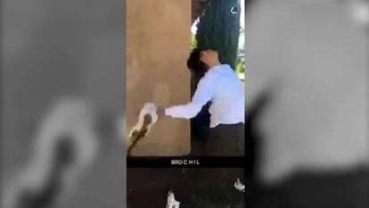El afán de protagonismo ha llevado a un joven de 16 años a ser una de las personas más detestadas de Ontario, California (EE UU). El chico ha sido detenido por la policía después de publicar un vídeo en sus redes sociales en el que lanza a una gata por los aires. El animal, después de volar varios metros, cae con todo su peso contra el suelo, maullando lastimeramente. La rápida difusión del vídeo a través de Internet ha facilitado la búsqueda a la policía, que ha detenido al joven acusado de abuso animal después de que intentara huir. La gata se está recuperando de una pata rota y de las lesiones internas que le causó la caída.