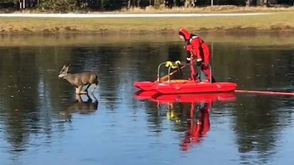 Los bomberos de la localidad de Sunriver, en Oregón (Estados Unidos), compraron recientemente un trineo gracias a una campaña de donaciones. El primer beneficiado de la adquisición ha sido un pequeño ciervo, que el pasado viernes quedó atrapado en un lago helado y pudo ser rescatado gracias al objeto.