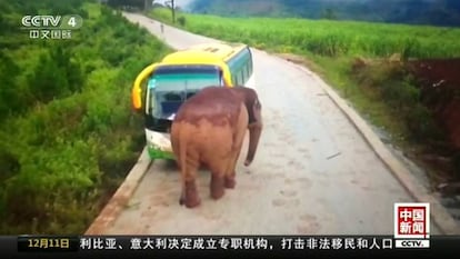 Un elefante salvaje ha atacado a varios vehículos en la región de Yunnan, en el suroeste de China. El animal, un ejemplar salvaje, no ha causado víctimas de ningún tipo, según ha informado la cadena china CCTV. El paquidermo fue captado atacando frontalmente a un autobús que se cruzó en su camino y rompió el parabrisas. Una persona dentro del vehículo pudo grabar con su teléfono la imponente imagen del animal tratando de romper el cristal. El mismo elefante también sacudió a un camión que rondaba la zona, según informó la cadena de televisión.
