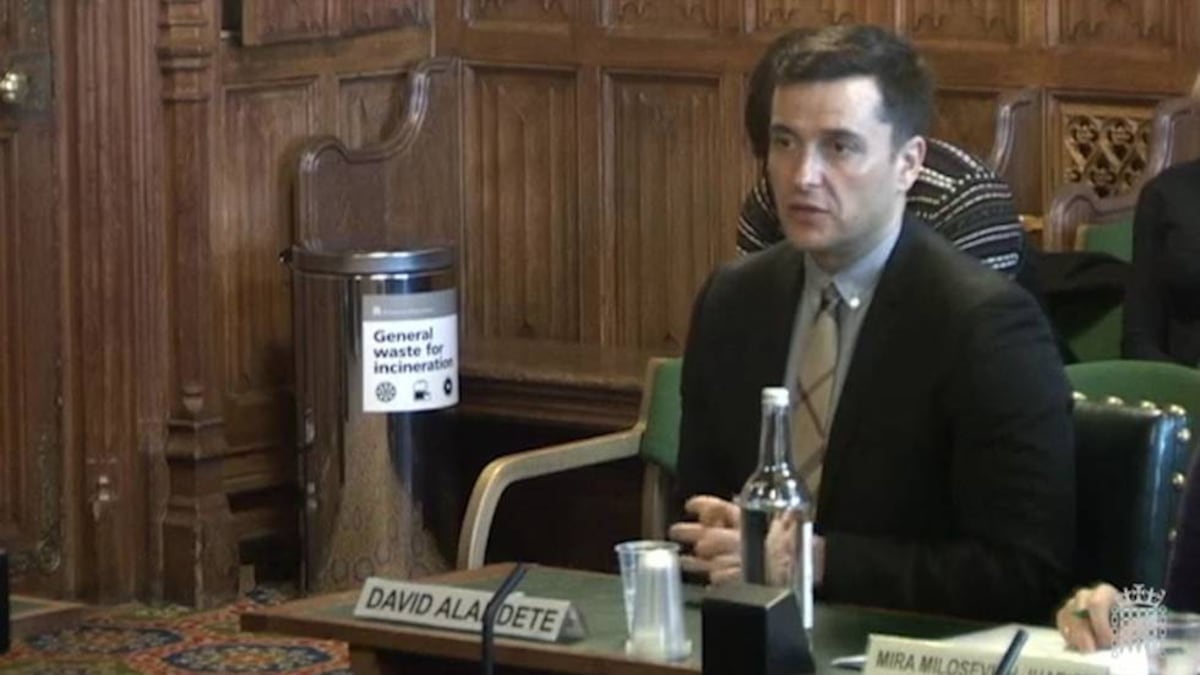 David Alandete, director adjunto de EL PAÍS, explica la cobertura del diario sobre las redes rusas ante una comisión de investigación de noticias falsas en Westminster