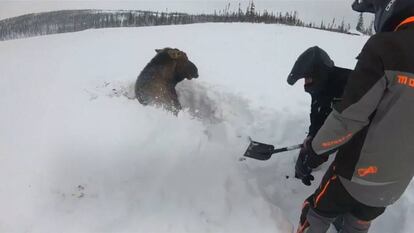 El rescate de un alce atrapado hasta el cuello en la nieve