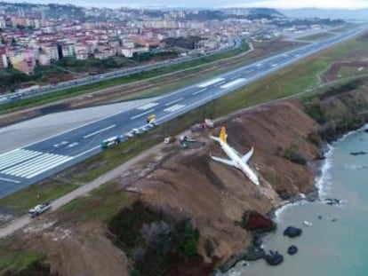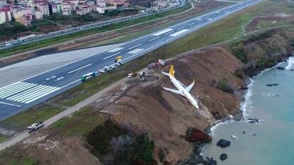 Turquía ha recuperado el avión que se accidentó el domingo y cayó en un acantilado en el aeropuerto de Trabzon, al noreste del país. En el artefacto viajaban 162 pasajeros y seis miembros de la tripulación, que resultaron ilesos del suceso. Se trataba de un Boeing 737-800 de la compañía turca Pegasus. Poco después de aterrizar, se precipitó por un desfiladero junto a la pista de aterrizaje y se quedó atrapado en una ladera. Pese a que no hubo heridos, en la cabina se vivieron momentos de angustia. El aeropuerto se mantuvo cerrado toda la noche mientras arrastraban el avión nuevamente a la pista. La Delegación del Gobierno turco ha abierto una investigación para aclarar las causas del accidente.