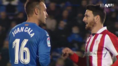 30 de enero de 2016. El Getafe recibe en casa al Athletic y en en el césped del Coliseum Alfonso Pérez saltan chispas entre Juan Cala y Aritz Aduriz. Tras un cruce de provocaciones, el defensa empuja al delantero, que se deja caer hacia atrás de manera ostensible. Cala acaba expulsado en el banquillo, pero la cosa no queda ahí. Al acabar el partido, difunde en las redes sociales una versión de lo ocurrido en la que critica duramente la actitud de Aduriz y Carlos Gurpegui, con el que también había tenido algún choque. Dice haber sido víctima de una provocación constante y asegura que Aduriz ha fingido y ha ganado en "el otro fútbol".